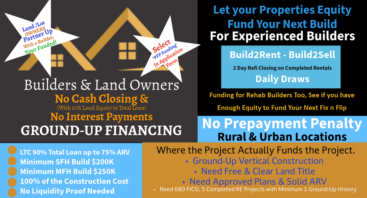 GROUND-UP FINANCING for RENTALS or SALES
